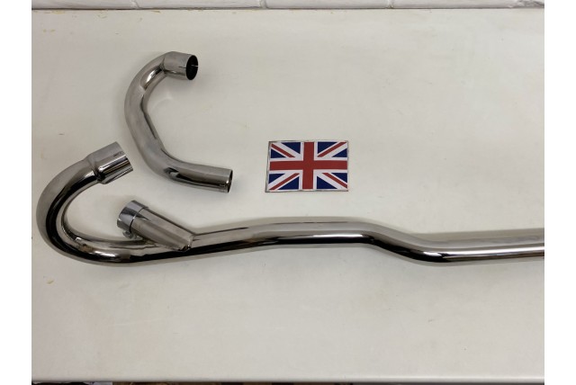 Triumph High Level Siamese Pipe Set for Unit construction 350cc & 500cc Models, exhaust outside diameter 1-3/8", pushes over 1-1/2" cylinder head stub.