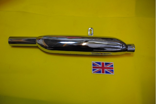 Silencer AJS/Matchless, 1-3/4" inlet, standard bracket for AJS Model 18MS and G80, slash cut end on tail pipe, for Girling suspension 1955 on, inlet 1-3/4"
