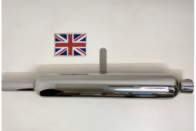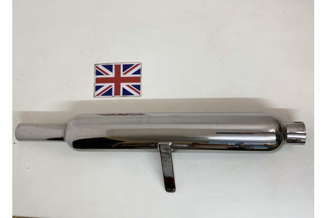 Chrome Plated Silencer BSA M20 WD Rigid Models with replica original baffle, overall length 25" (65cm), 3-1/2" Barrel, 1-3/4" Inlet