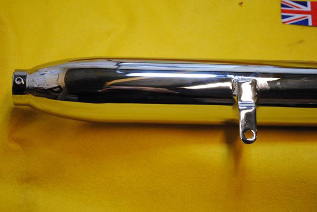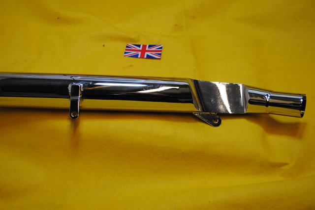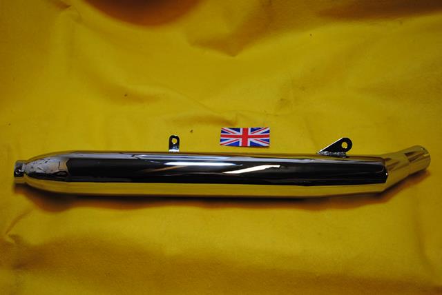 Greeves Scottish 2 Stroke silencer, long silencer fitted to short swing arm models. Inlet 1-3/4" overall length 29-1/2"