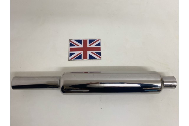 4 Stroke Universal Barrel Type silencer, 20" long, tail pipe is 6" long, inlet 2"