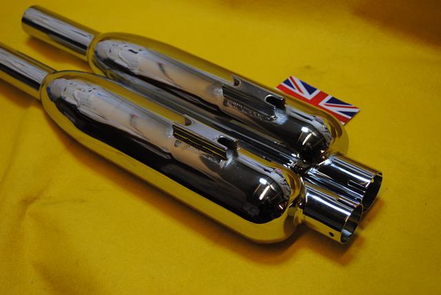 Triumph 500cc and 650 Trophy silencer for Cross Over Trophy Pipe Set on - swinging arm models, inlet 1-3/8"