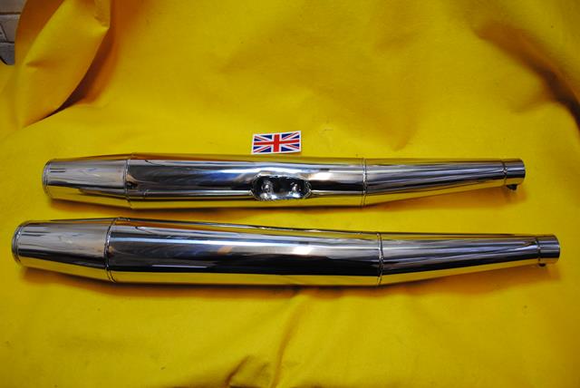 Stainless Steel Silencers for MotoGuzzi California, with muted internals, inlet 42mm
